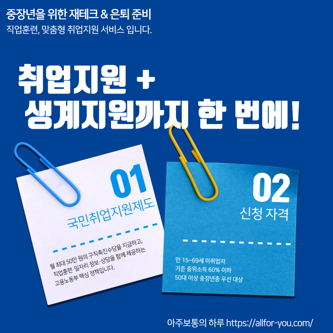 #국민취업지원제도 #중장년재취업지원 #구직촉진수당 #국비지원훈련 #50대취업준비 #은퇴자취업정보# 고용복지센터신청