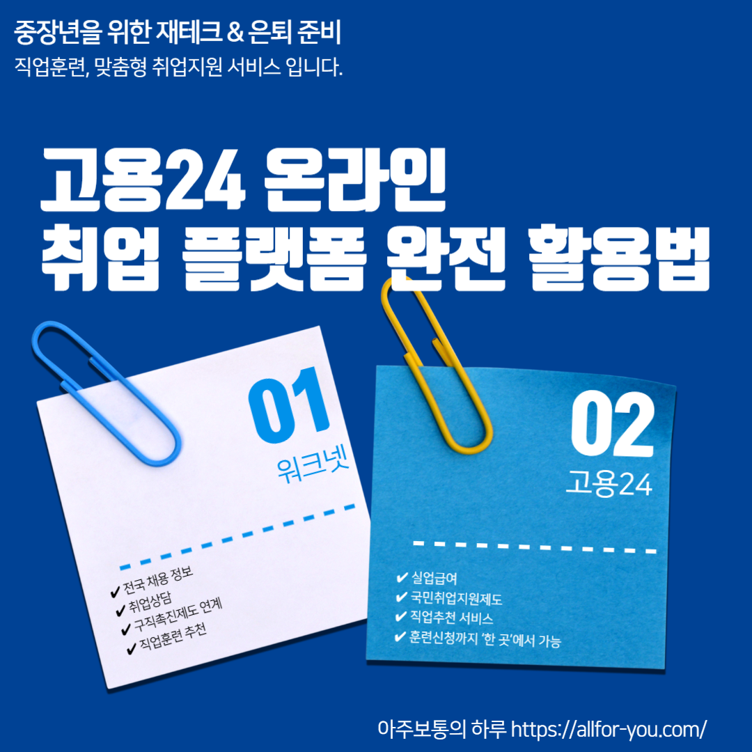 - 모바일 앱: 워크넷 / 고용24 검색 후 무료 다운로드 가능
